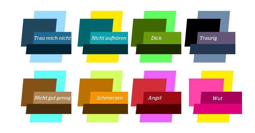 Jedes der Themen wurde von uns farblich „kodiert“ und mit diesem frei assoziativen Colorcode versehen.